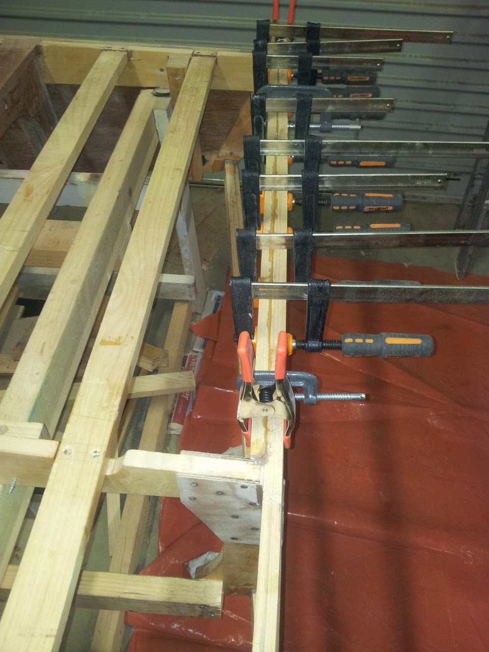 I think that perhaps this could be in the running for the most clamp density used on a boat build!