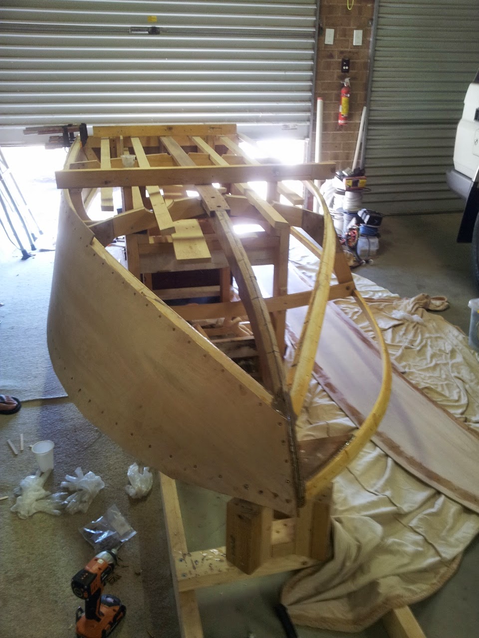 I have started the fairing of the bottom of the boat and have scarf jointed the plywood panels for the bottom. As a whole, I am happy with how the boat is progressing and I am hopeful that I can get the bottom paneling on before the summer is over.