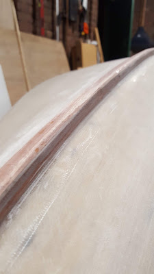A lot of work with the hand pland and sand paper went into getting the keel strip smooth with a consistent radius. I have put epoxy fillets along the length of the keel strip which needed a lot of sanding to get consistent. It isn't perfect but I am quite happy with it.