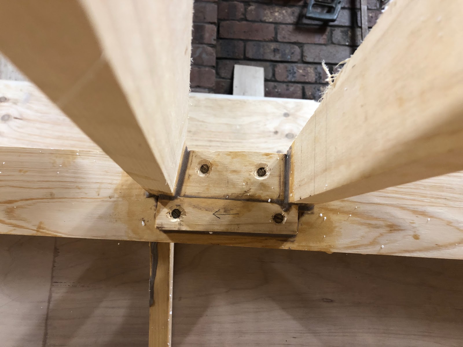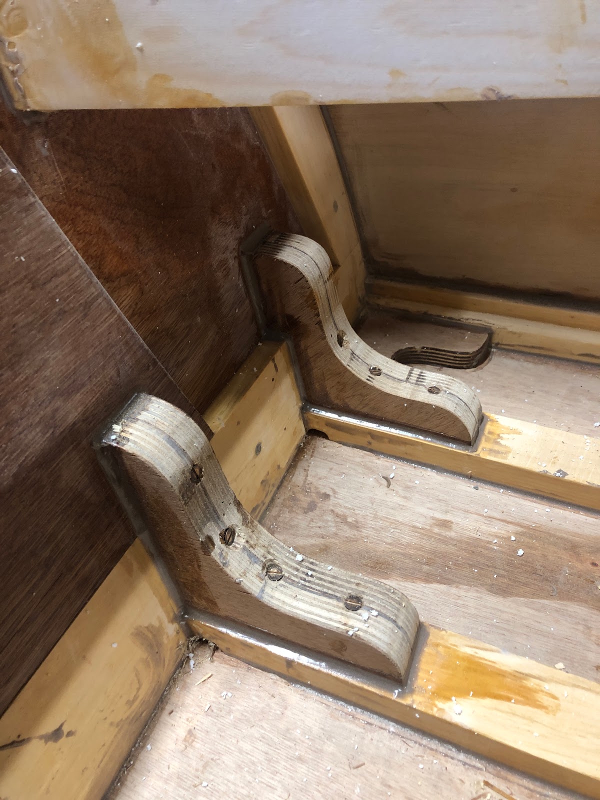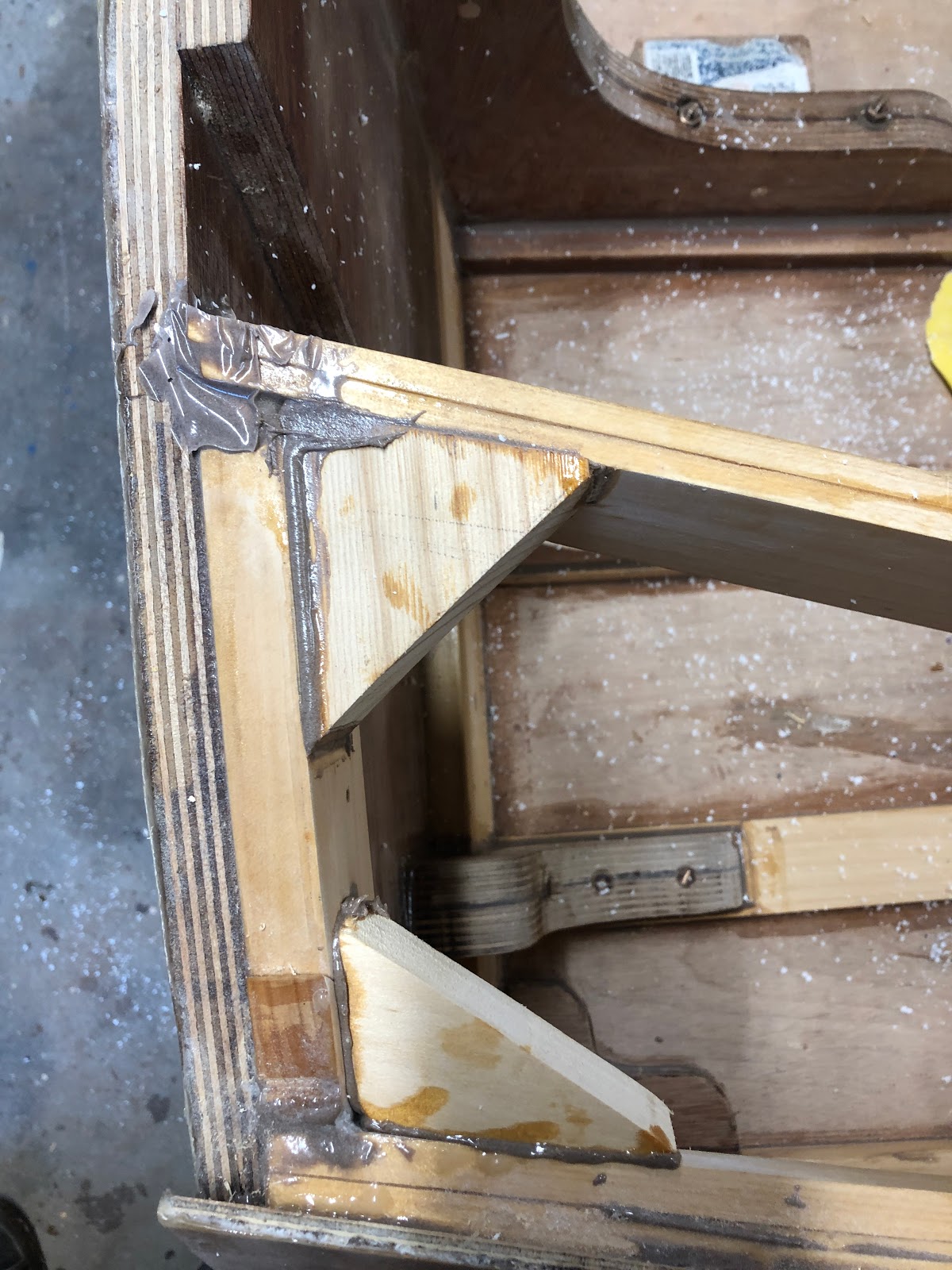 An angled piece of wood was cut and glued in place to support the back rest of the seat.