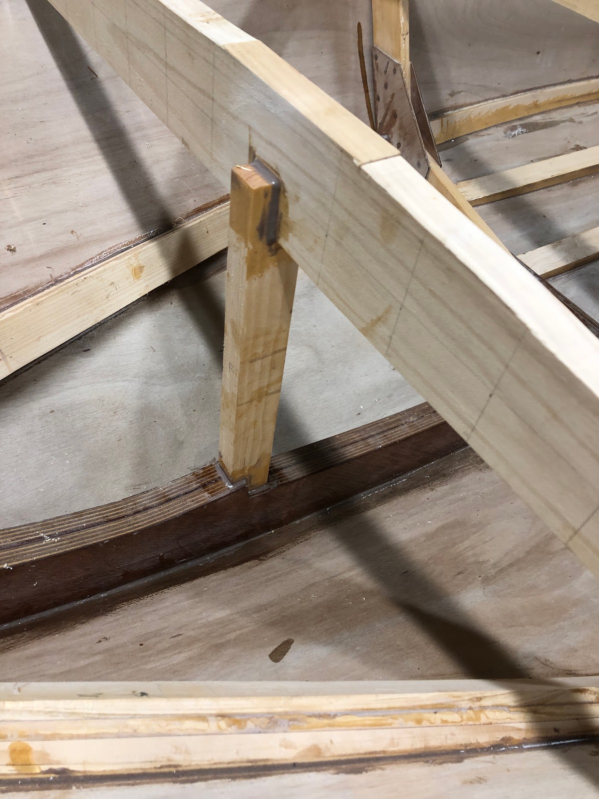 Another piece of wood was added to the deck beam on frame 2 for added strength. These frames get notched for the deck battens and therefore loose some of their strength.